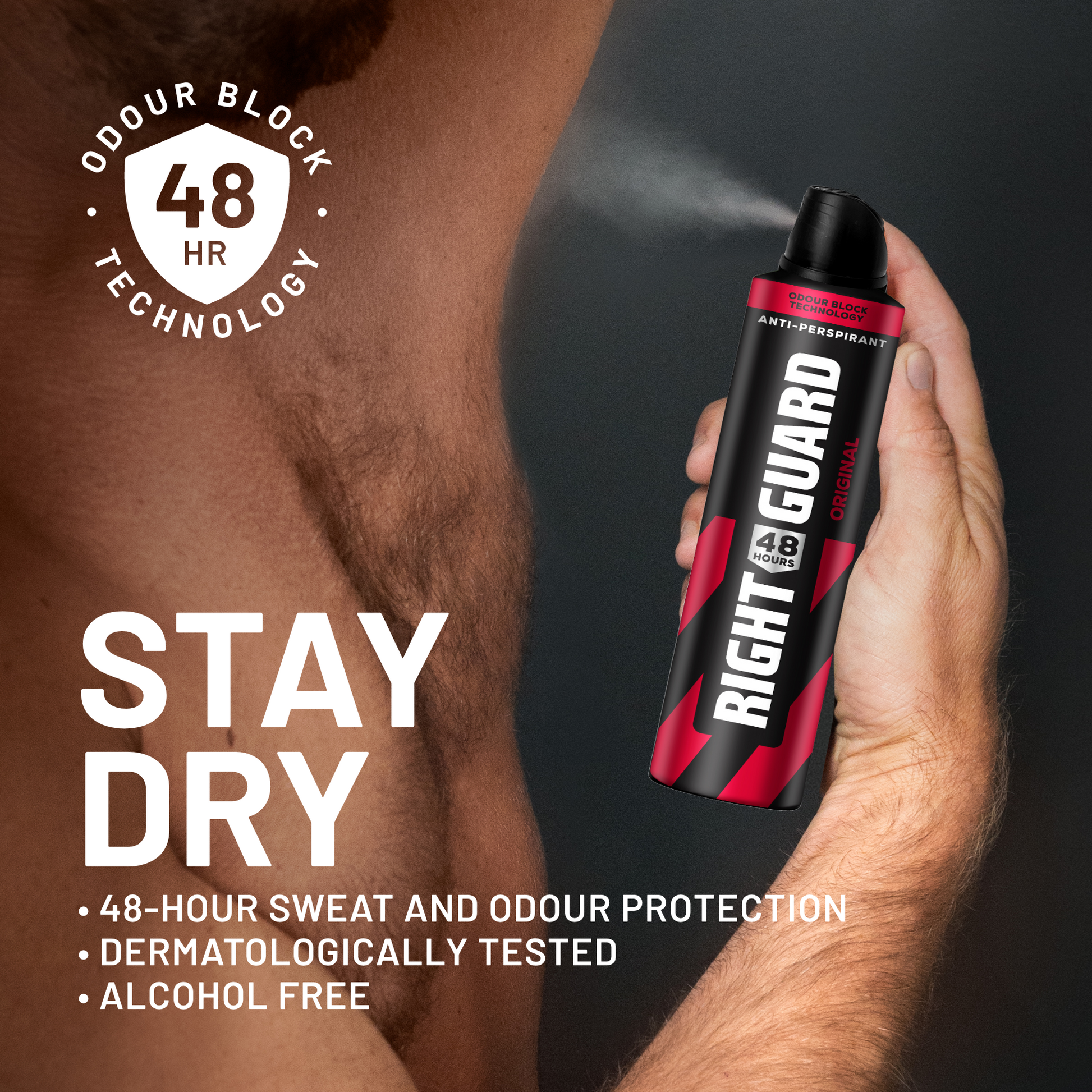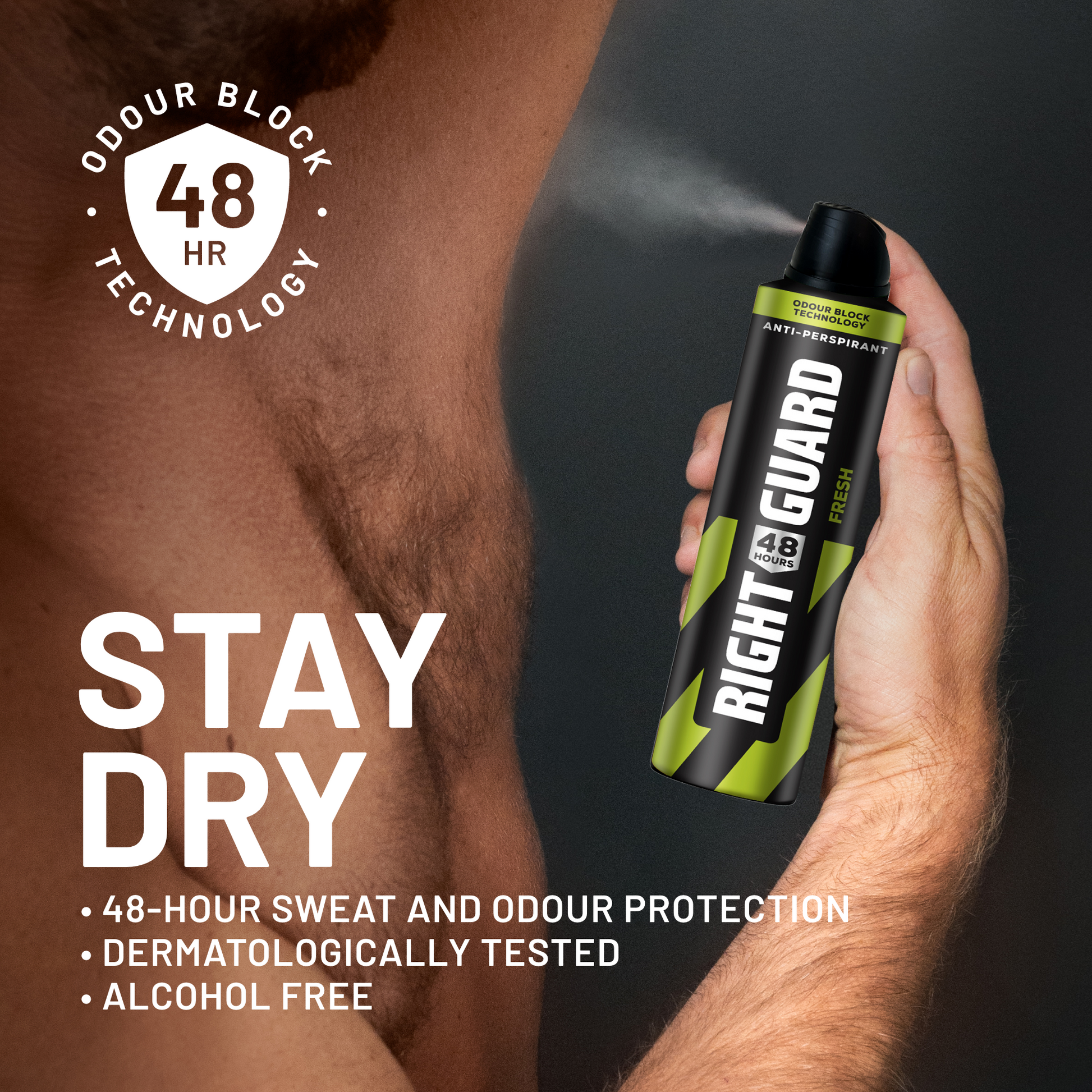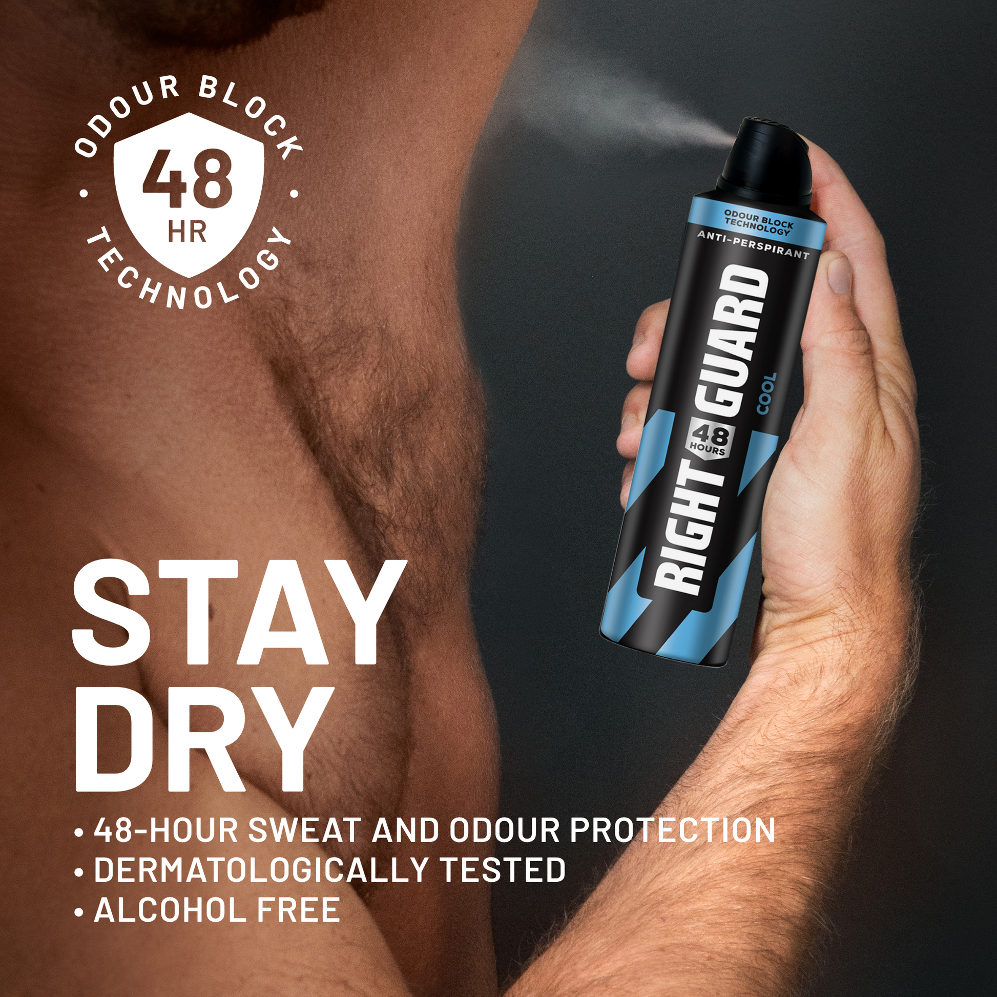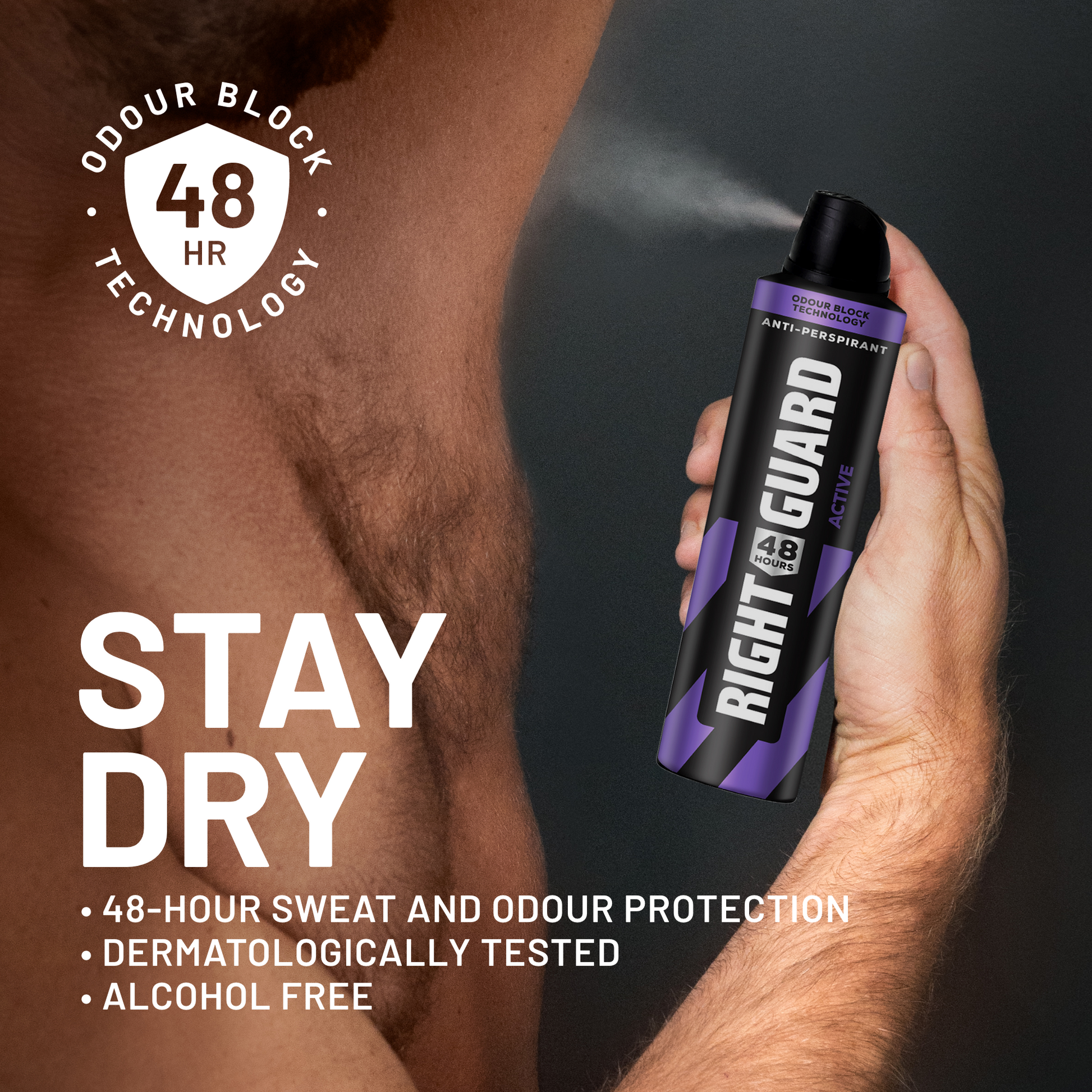 You don't give up, and neither should your antiperspirant and deodorant. That’s why we built Right Guard 48-hour Aerosol for the workday. With 48-hour odour control and its hard-working ability to block sweat, you can focus on tackling one task after another and still smell fresh. Plus, it’s gentle on skin. Just spray and go.