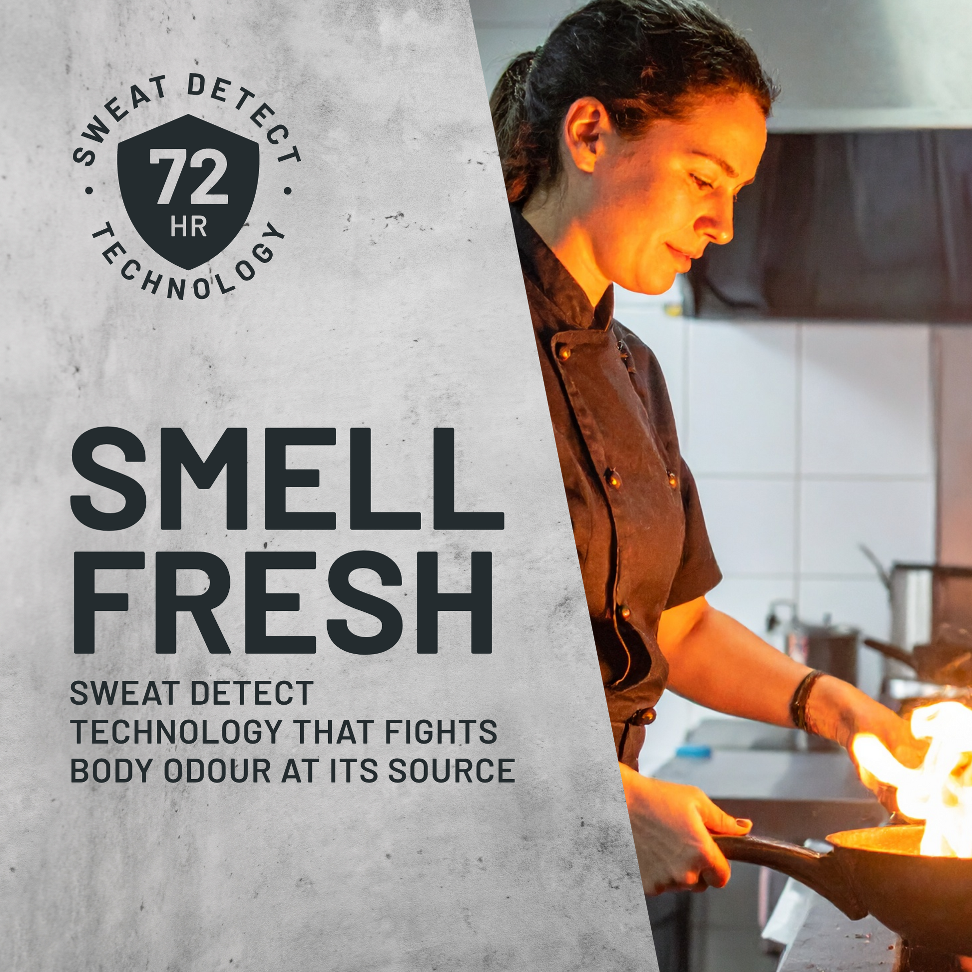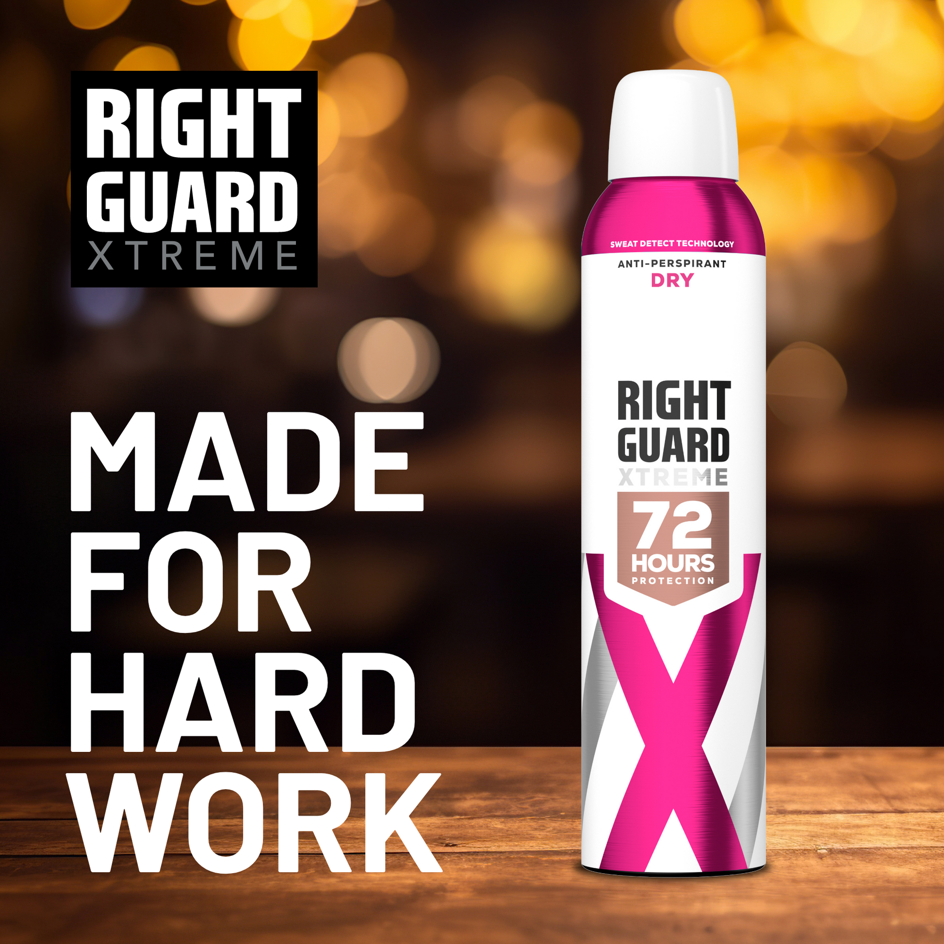 You don't give up, and neither should your antiperspirant and deodorant. That’s why we built Right Guard 72-hour Aerosol for the workday. With 72-hour odour control and its hard-working ability to block sweat, you can focus on tackling one task after another and still smell fresh. Plus, it’s gentle on skin. Just spray and go.